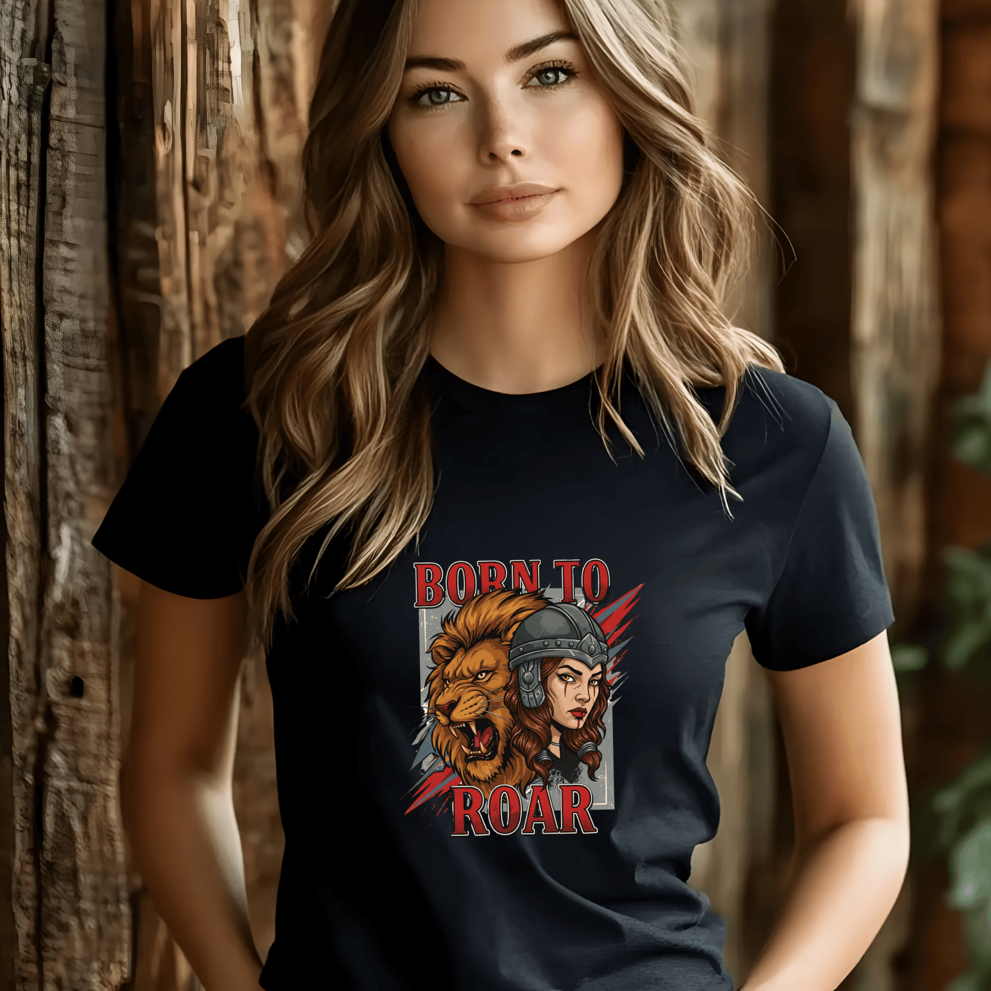 Born to Roar Women’s Biker T-Shirt – Heavyweight Gildan® 5000 Crewneck