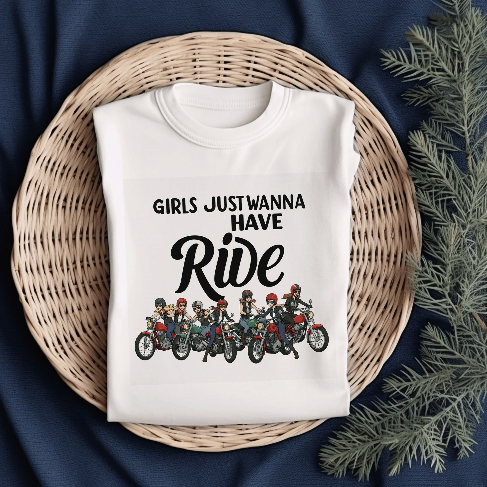 Girls Just Wanna Ride Women’s Biker T-Shirt – Heavyweight Gildan® 5000 Crewneck