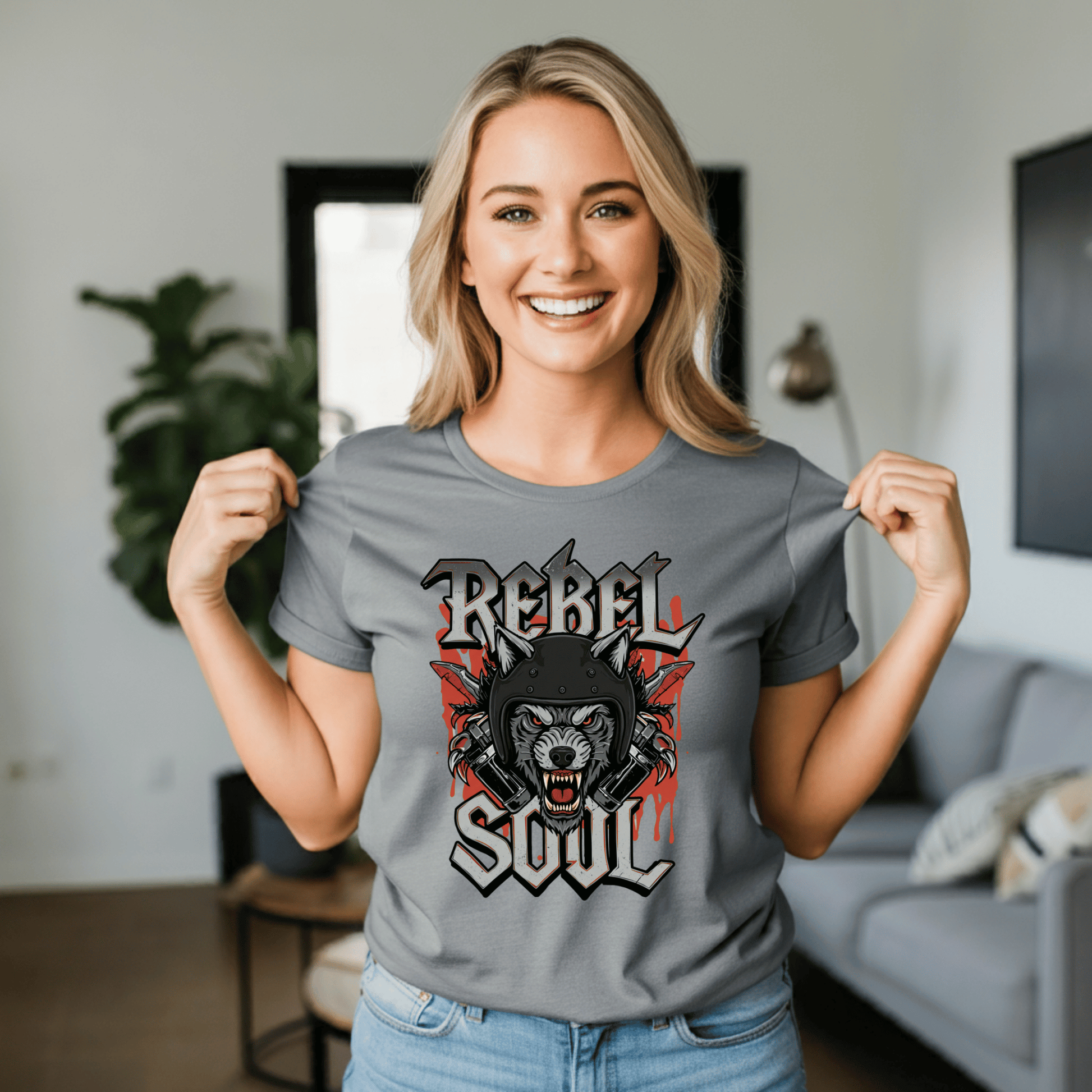 Rebel Soul Women’s Biker T-Shirt – Heavyweight Gildan® 5000 Crewneck