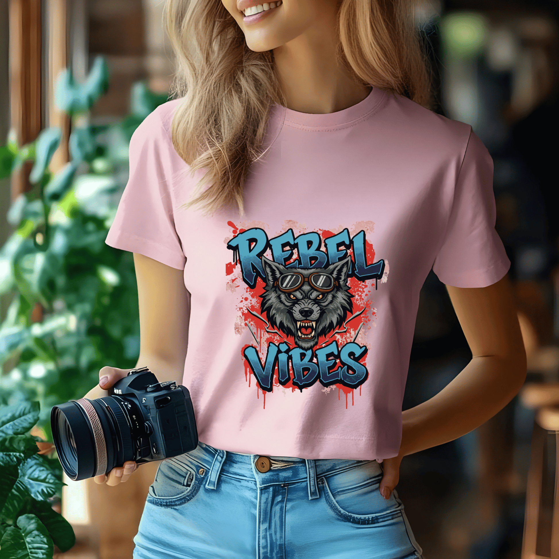 Rebel Vibes Women’s Biker T-Shirt – Heavyweight Gildan® 5000 Crewneck
