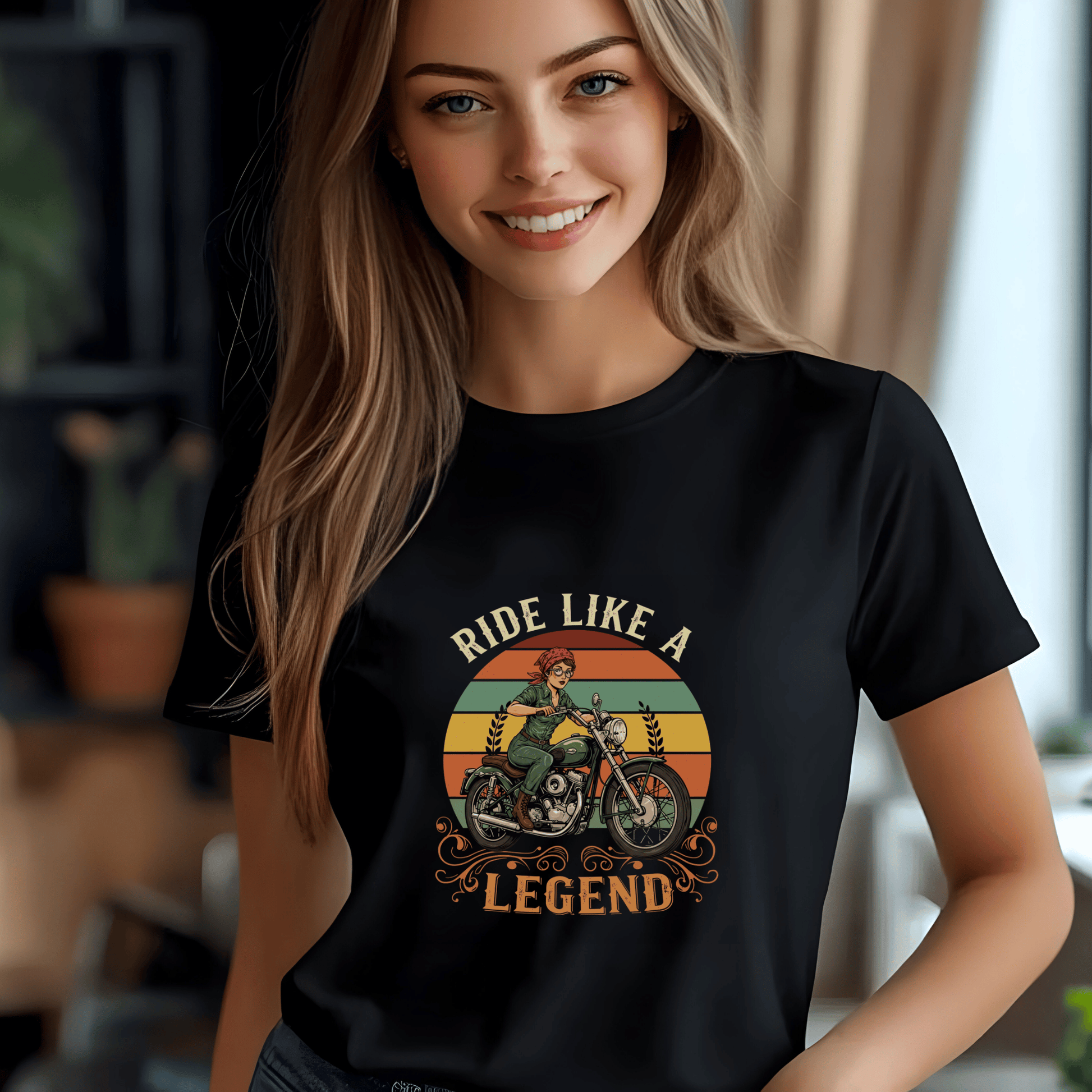 Ride Like a Legend Women’s Biker T-Shirt – Heavyweight Gildan® 5000 Crewneck