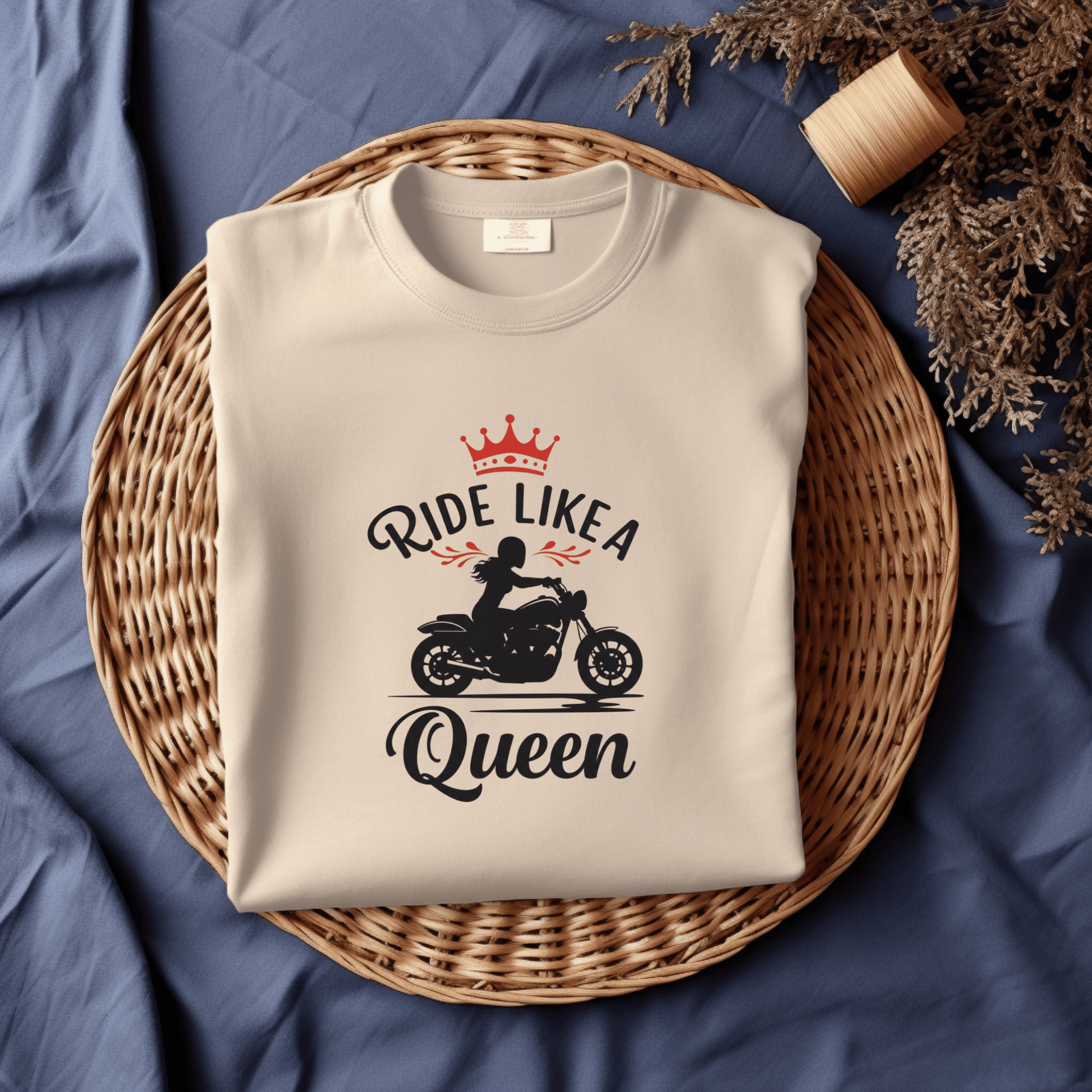 Ride Like A Queen Women’s Biker T-Shirt – Heavyweight Gildan® 5000 Crewneck