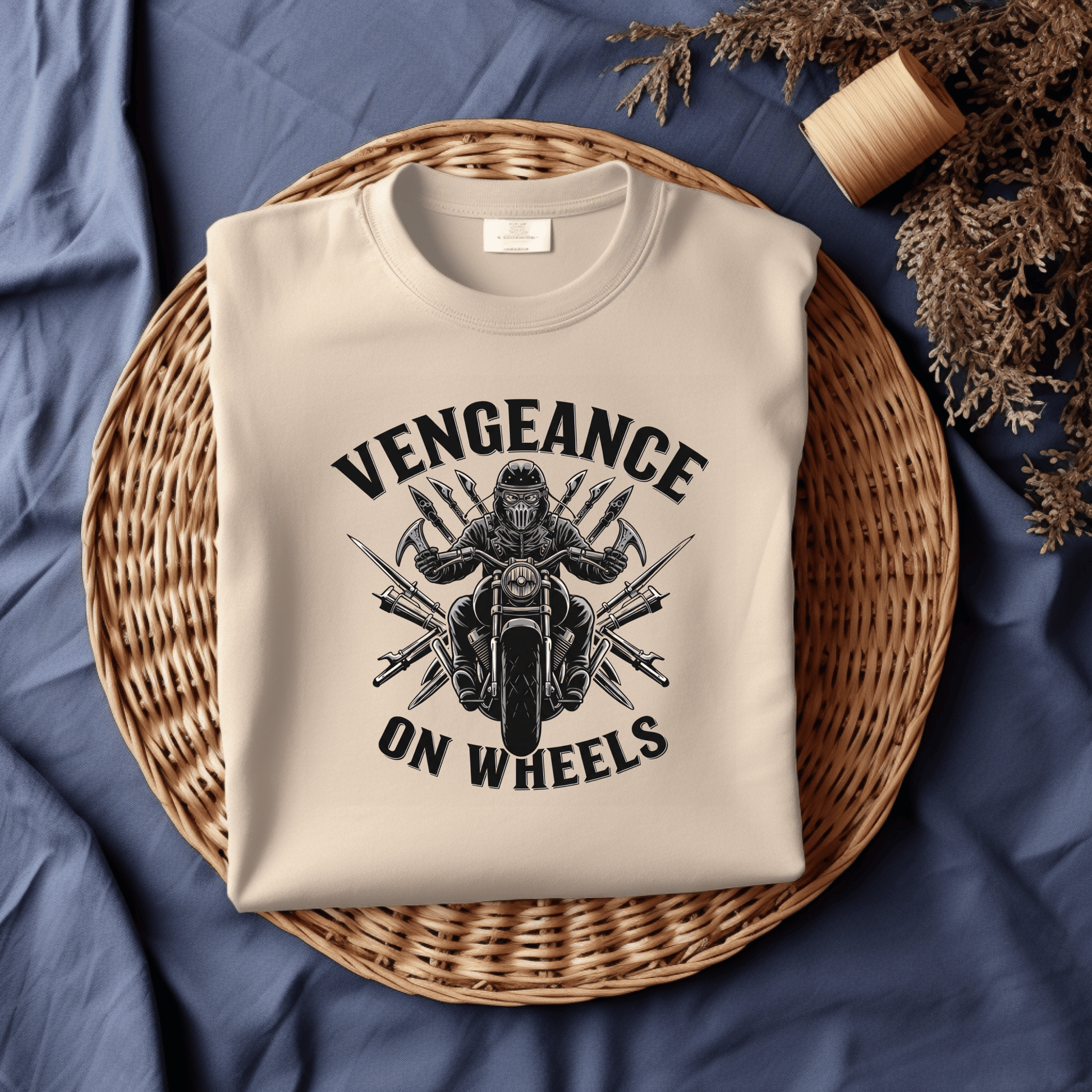 Vengeance on Wheels Women’s Biker T-Shirt – Heavyweight Gildan® 5000 Crewneck