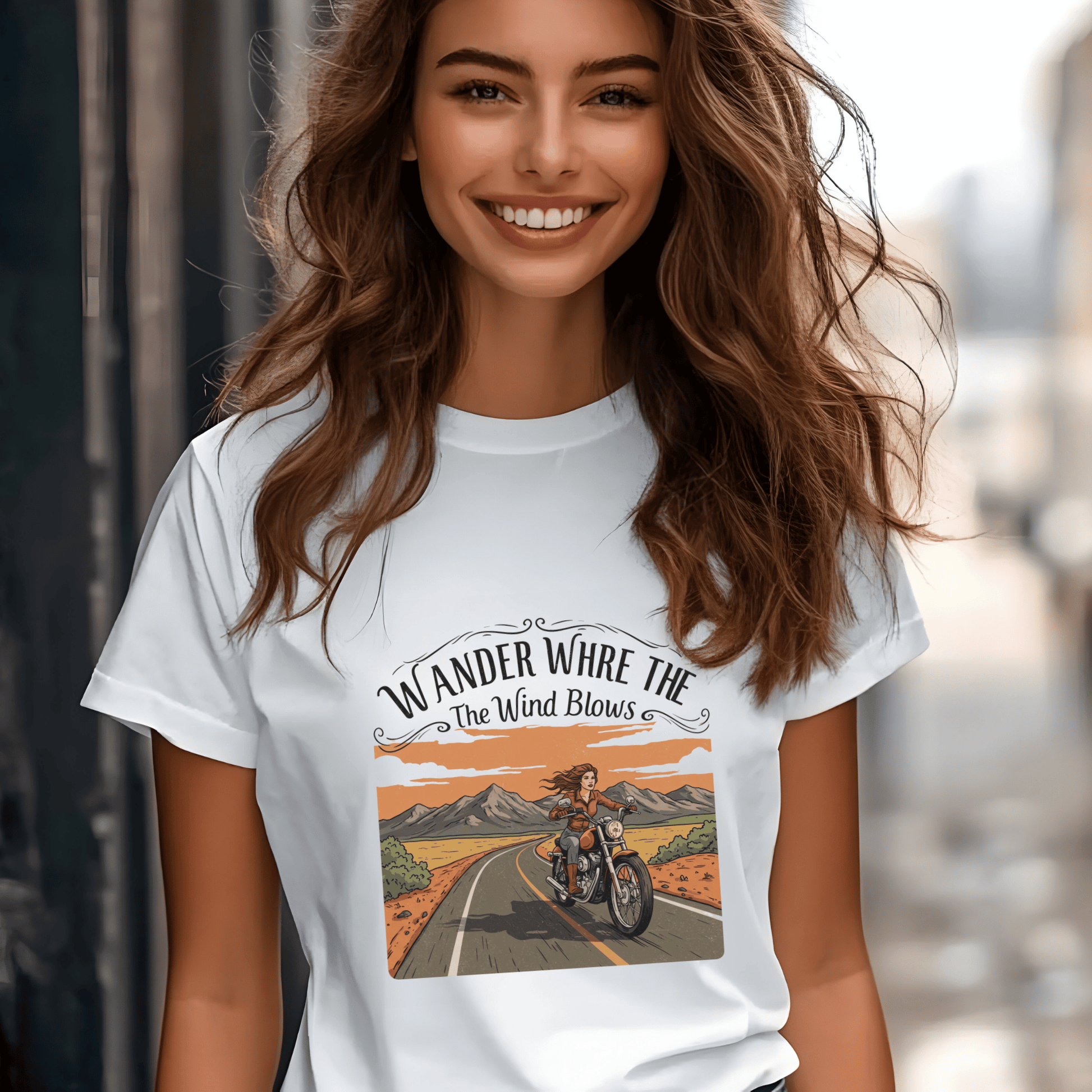 Wander Where The Wind Blows Women’s Biker T-Shirt – Heavyweight Gildan® 5000